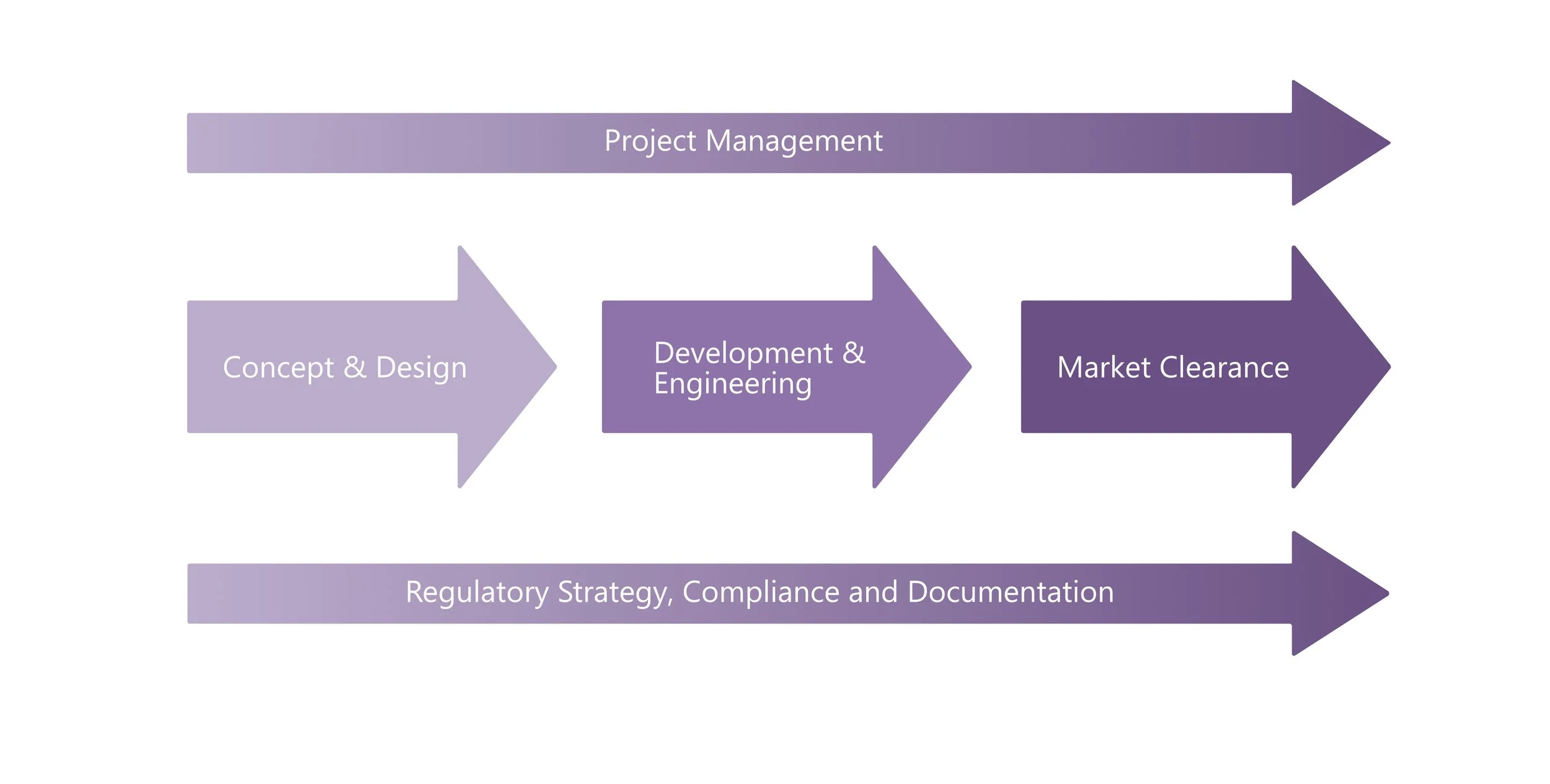 SechMed can manage your entire development project, or integrate seamlessly at key stages, from idea through design and on to market approval, guided by clear regulatory strategy, ensuring safe, effective and marketable devices